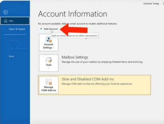 ขั้นตอน 1 เพิ่มอีเมลเข้าไปใน outlook