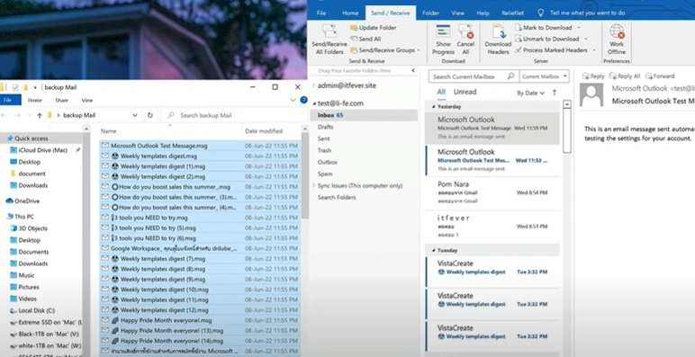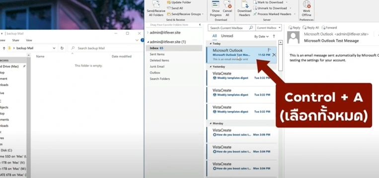 จากนั้น ทำการสร้าง folder แยกไว้ในคอม และลากอีเมลจากระบบเข้ามาเก็บไว้ เพื่อทำการ back up หรือ ไว้รอการย้ายไปอีเมลใหม่