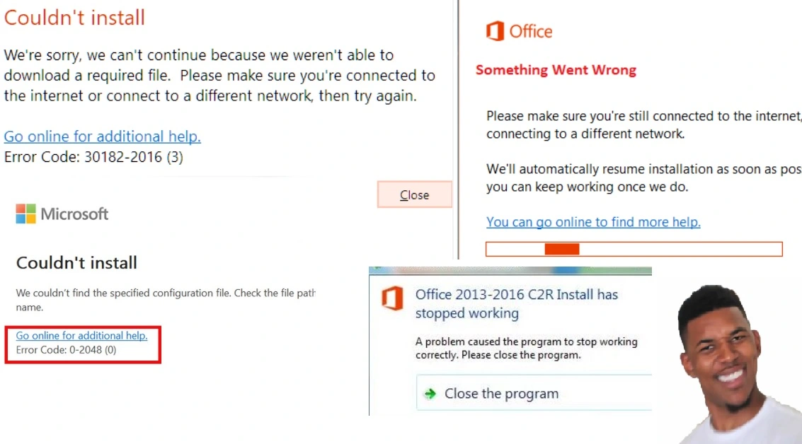 โดยปกติ การที่ลูกค้าส่วนมาก มีปัญหา office ร้อยล่ะ 80-90% มักจะมาจากการลงโปรแกรมปลอมมาก่อน เเละเด้งเเจ้งเตือน วิธีนี้ยังพอแก้ไขเบื้องต้นได้โดยการ ใช้โปรแกรมถอนไมโครซอฟท์   ไล่ถอนคีย์ฝั่ง ลบ crackผ่าน CMD หรือใช้เทคนิคอื่นๆเข้ามาผสม repair ไล่แก้ registry เเต่หาก แก้ปัญหาเบื้องต้น เเล้วไม่สามารถติดตั้งได้ จะเป็นการยากมากครับที่จะให้ assistance ของไมโครซอฟท์มาไล่ให้จุดต่อจุด เพราะการไล่แก้ปัญหานอกเหนือเเนะนำเบื้องต้น จำเป็นต้องทำเป็นงานเเบบ  troubleshooting Quote ราคาแยกเป็นรายชั่วโมง โดยปกติการซื้อ license ทั่วไป จะไม่มีร้านค้าปลีกไหนไล่แก้ให้ครบครับ (Out of Scope of Work)