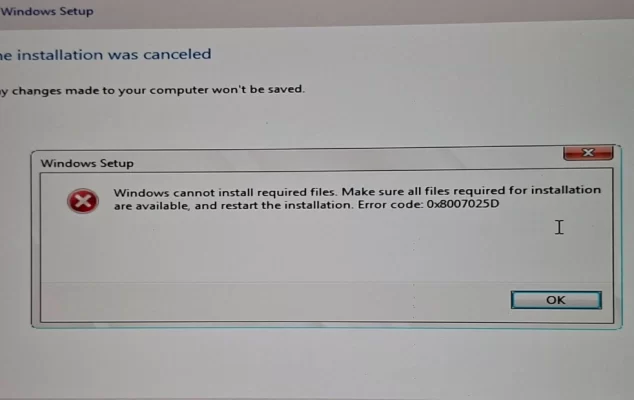 วิธีแก้ปัญหาในขณะบูทลงวินโดว์ Windows cannot install required files Error 0x8007025D