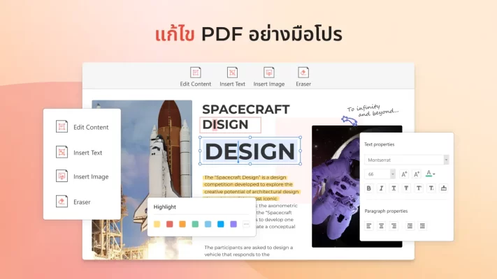 - สามารถแก้ไขข้อความในไฟล์ PDF ได้โดยตรง คล้ายกับการใช้โปรแกรม Word
